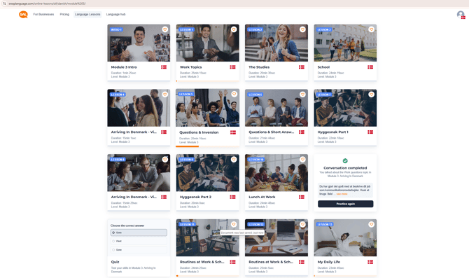 Accessing Conversation Practice Tool and Quiz.
